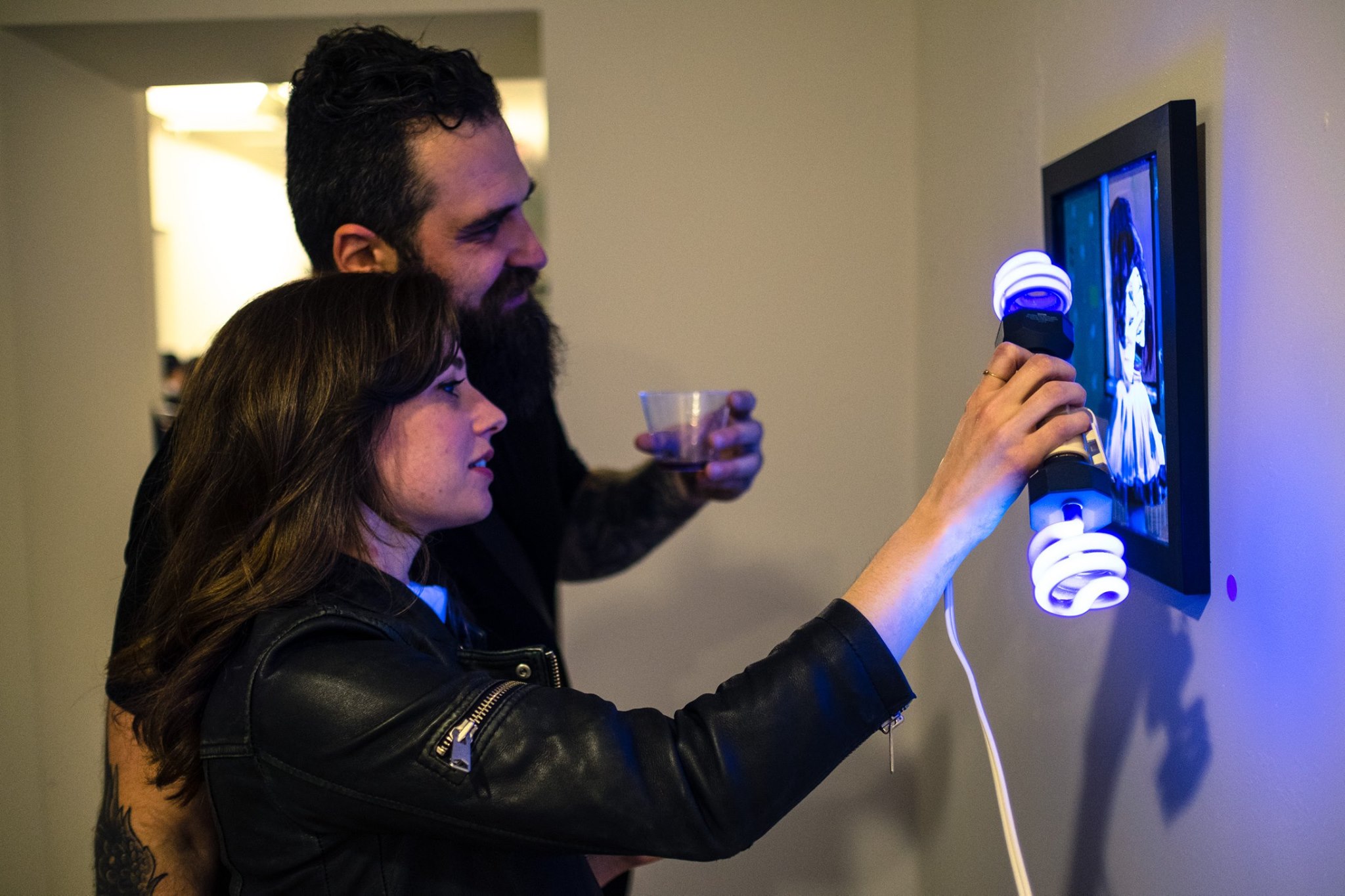 The individual works represent a re-invention by Casu of a known technique: a painting on printed photographs. By overlaying a contrasting artistic form on existing photographs, Casu interweaves an ongoing dialog between two artistic souls with every brushstroke. He first uses traditional fine-art oil grade and acrylic paint; then he adds invisible flourishes with fluorescent paint, visible only by direct exposure to UV light. The effect is to surface a thought-provoking “third perspective” over the initial piece.